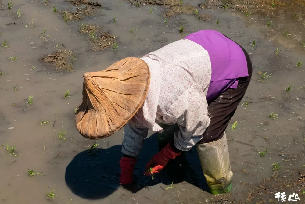 阿嬤怎麼還辛苦地彎腰插秧呢?」