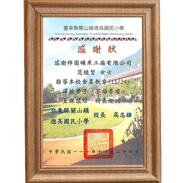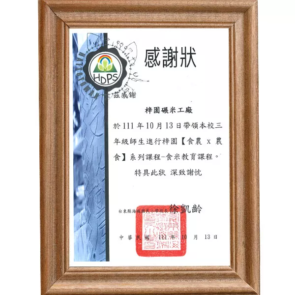 - 農遊體驗品牌—後山巡米所 獲得「特色農業旅遊場域認證」