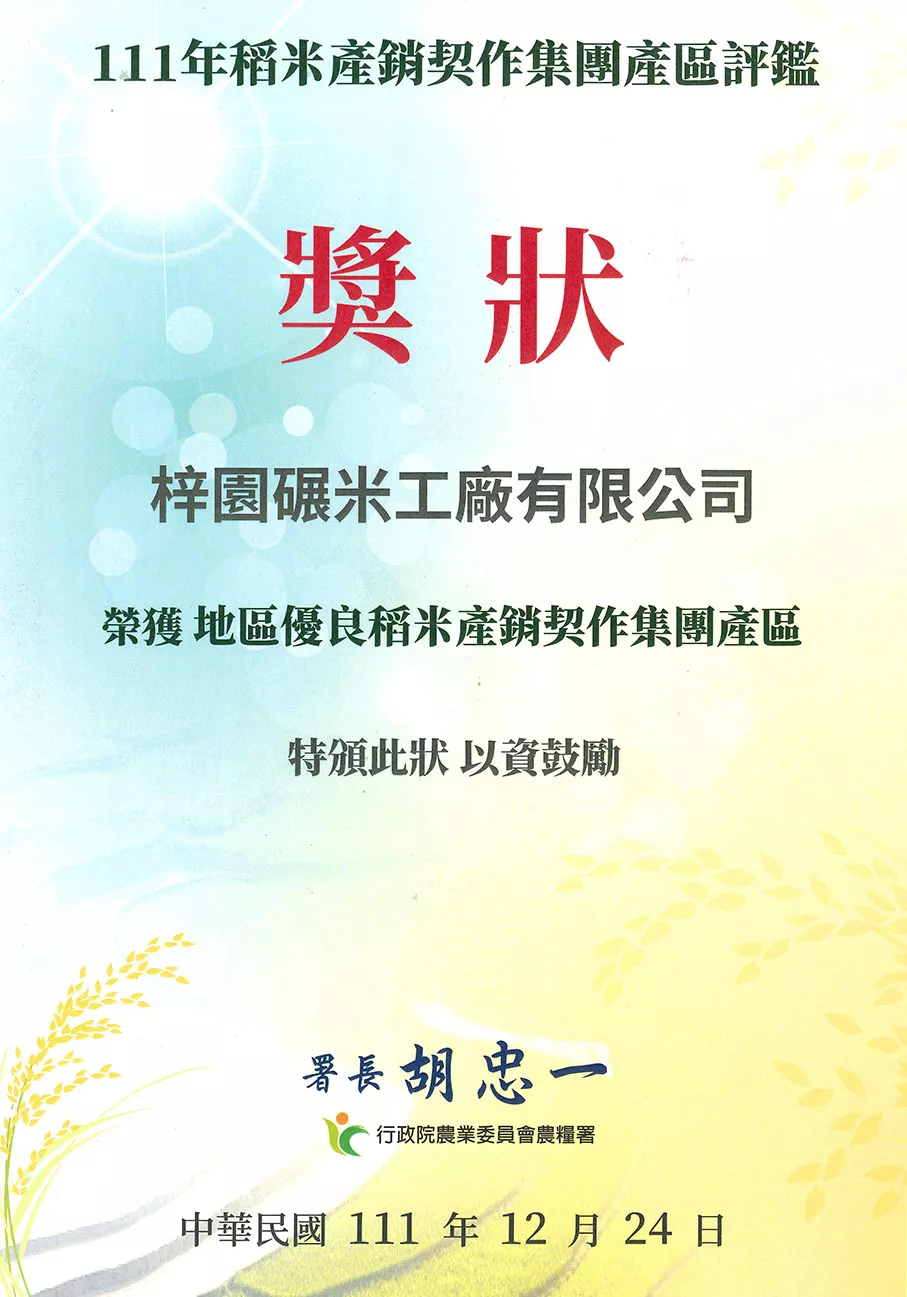- 113、111、109、103年度績優稻米產銷契作集團產區