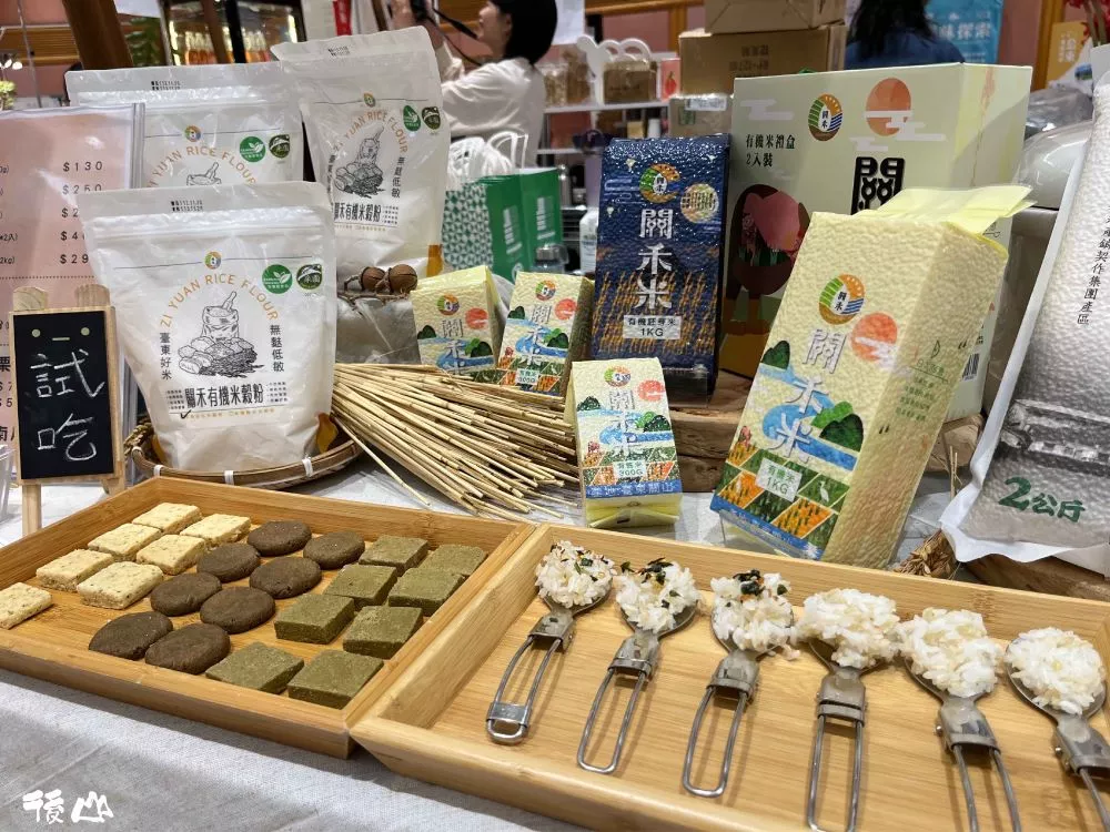 用有机米榖粉做的米饼干提供客人试吃喔!