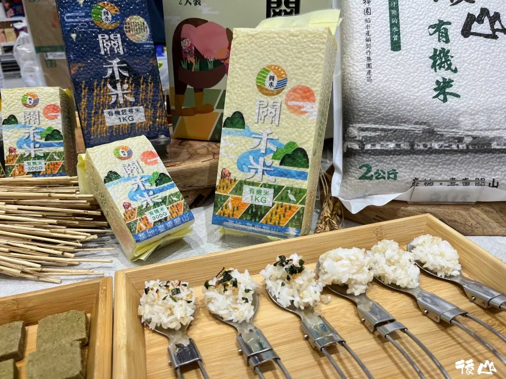 用有機米榖粉做的米餅乾提供客人試吃喔!