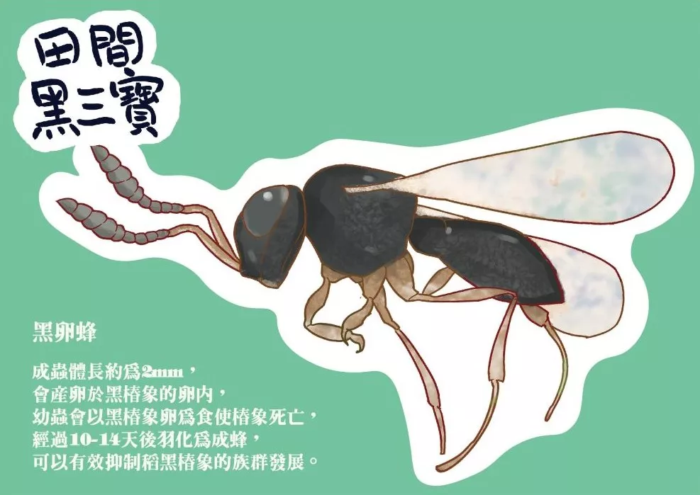 「稻黑椿象」、「黑殭菌」、「黑卵蜂」